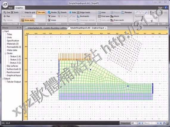 through the slope. The program then generates a finite element mesh from